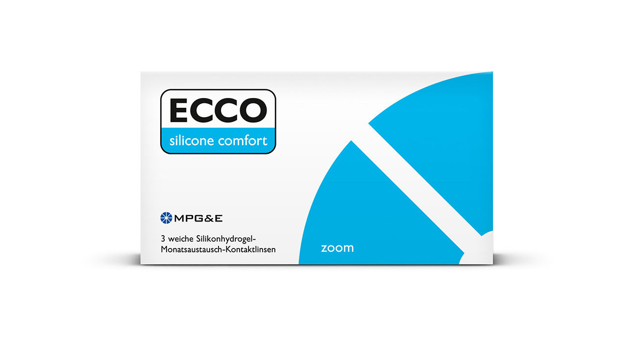 The ECCO silicone comfort is a spheric monthly silicone hydrogel lens. Due to a special production technology the lens has extraordinary wetting abilities and wearing comfort. A diffusion technique is the reason for adherence of hyaluronate gel to the material surface. The extremely hydrophilic hyaluronate guarantees a high water adherence, an excellent wettability and long-lasting wearing comfort. The lean design, the wee-balanced water content and the high oxygen transmissibility complete the features of the lens.